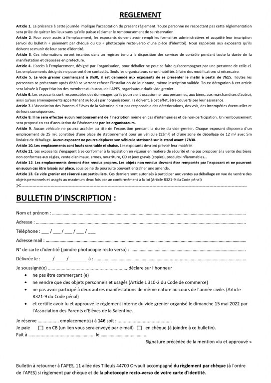 Vide Grenier APES ORVAULT