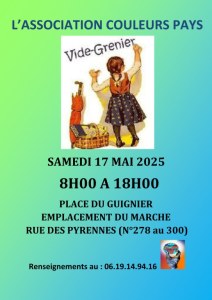VIDE GRENIER ASSOCIATION COULEURS PAYS samedi 17 mai 2025 Paris 20