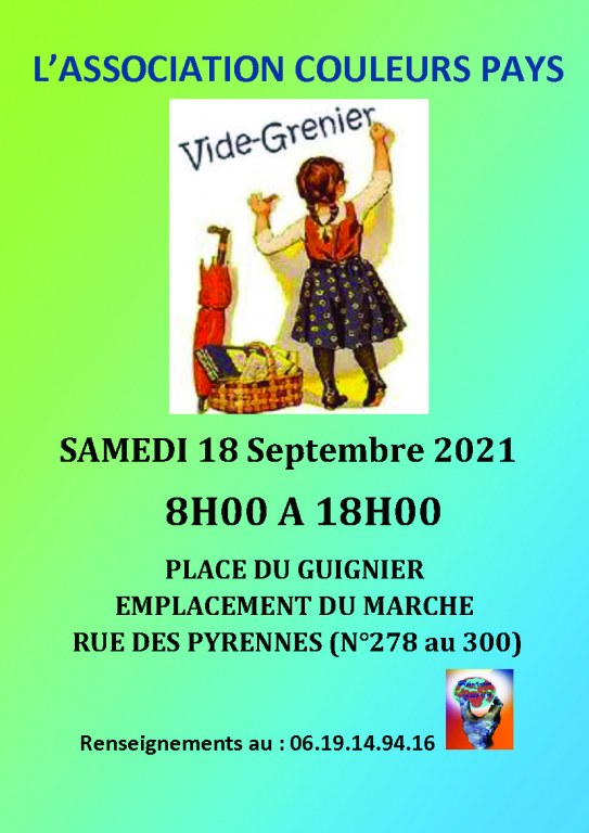 Vide grenier Couleurs Pays samedi 18 septembre 2021 Paris 20