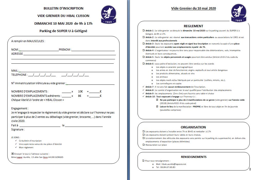 Cette page concerne les brocantes et vide greniers de Vide grenier du club de Hand de Clisson Rechercher dans la catégorie : Vide grenier Rechercher dans la catégorie : grenier, club, vide, hand, clisson |