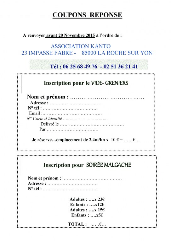 Tarification : 10€ PAR EMPLACEMENT PAS DE STAND ALIMENTAIRE