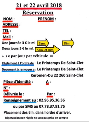 Situé entre Paimpol et Guingamp à 4 kms de Pontrieux. Restauration, buvette, toilette, parking sur place. Réservation par SMS au 07.78.37.91.75 ou après 19 h. au 20.96.95.36.36. Placement des 6h. dans l'ordre d'arriver.