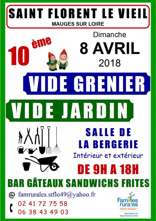 L'association Familles Rurales de St Florent le Vieil organise son 10 ème vide grenier – vide jardin.