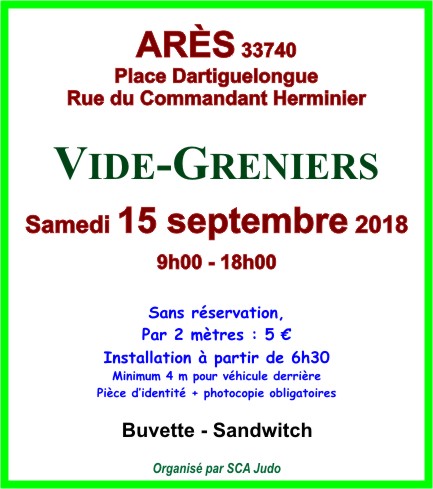 Cette page concerne les brocantes et vide greniers de Vide-Greniers du SCA Judo Rechercher dans la catégorie : Vide grenier Rechercher dans la catégorie : greniers, vide, judo |