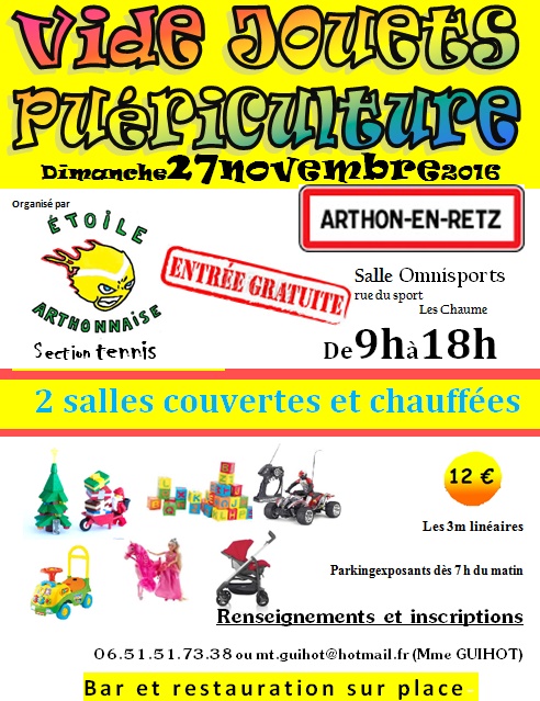 Parking Vélodrôme En direction du bac de Loire De 8h à 18h Buvette et restauration sur place 12€ pour 12 m2 Réservé aux particuliers Contact : 02.40.86.49.85 (9h-17h aux heures de bureau) m.alix@amicale-laique-coueron.fr Fréquentation / Nombre d'exposants : 100 Tarification : 12€ les 12m2...