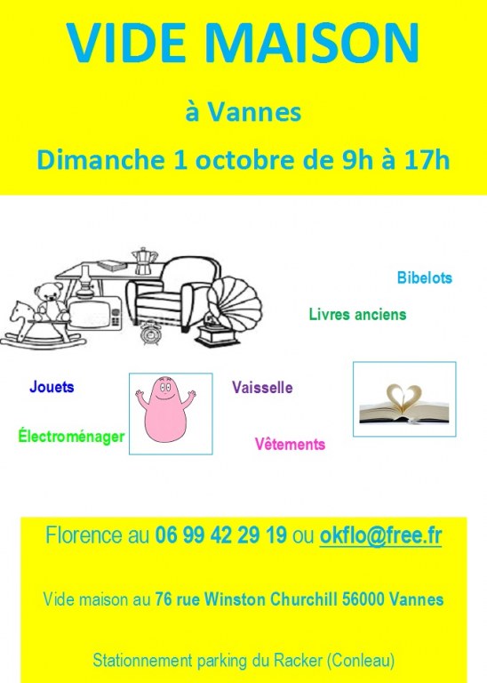 vide maison de 9h à 17h, venez chiner et trouver plein de bonnes affaires : -)