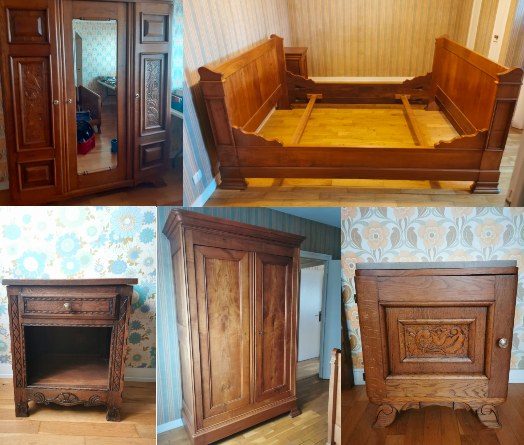 - Meubles : chambres, salle à manger, canapé et fauteuil, chaises, bancs...